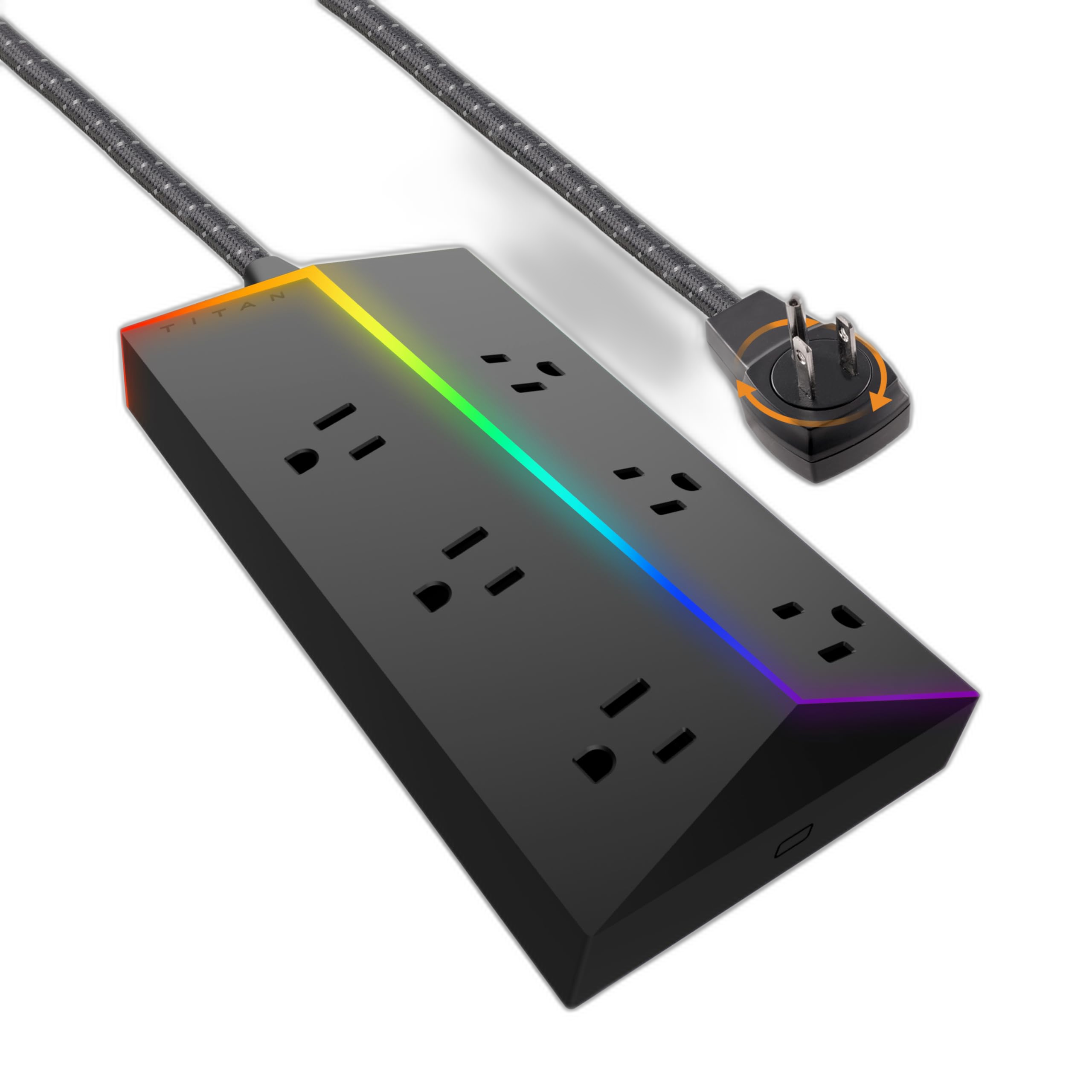 Titan 6-Outlet Surge Protector, 4 ft Braided Extension Cord, LED Light Strip with Full Spectrum Color-Select, Compatible with Gaming PC, Laptop, Computer Setup, PS4, PS5, Xbox, Black, 60045