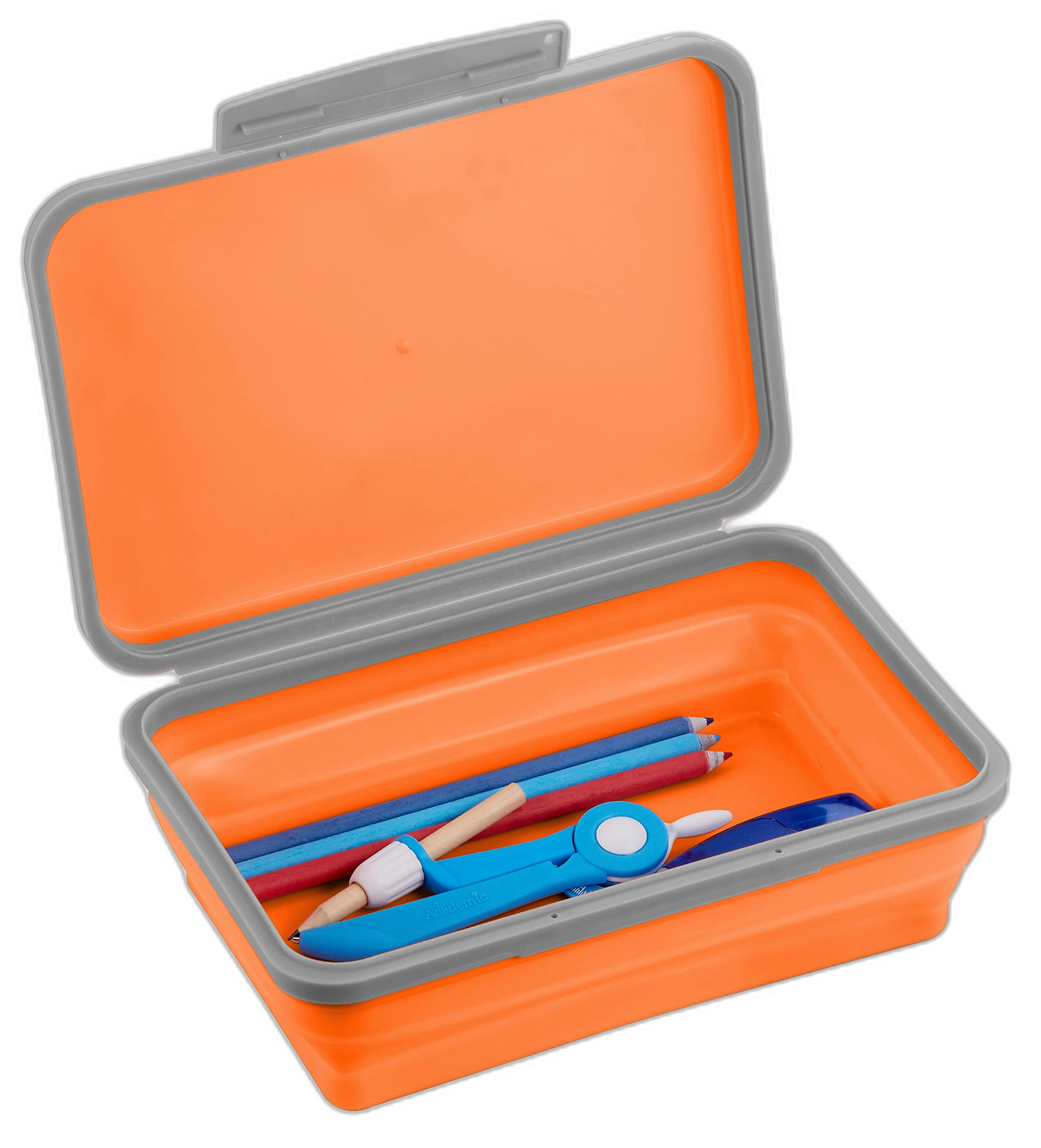 It's Academic Flexi Storage Box with Lid, Collapsible Pencil Case Design for Craft and School Supplies, Orange