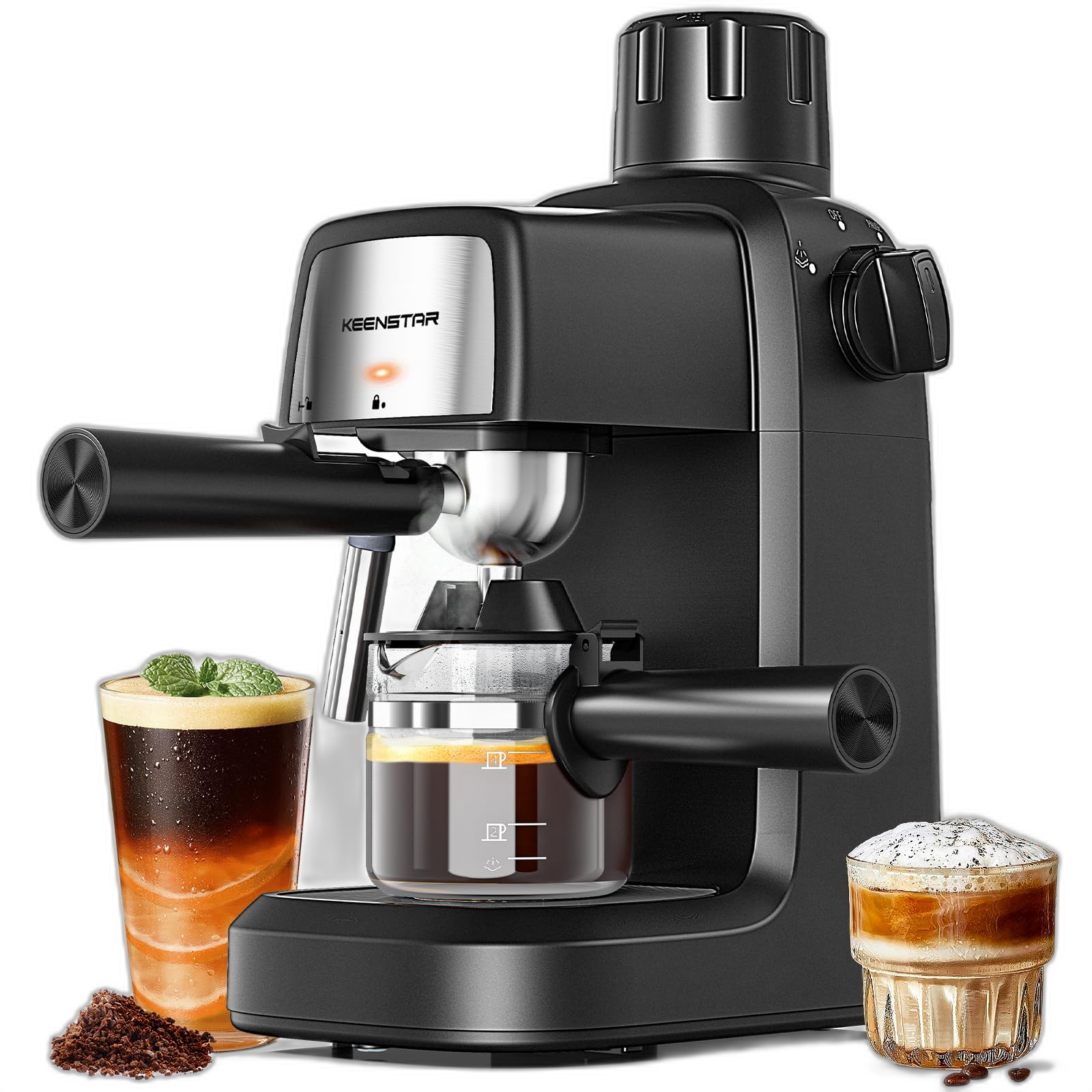 KEENSTAR 3.5Bar Espresso Machine with Milk Frother, 800W Compact Espresso and Cappuccino Machine with Preheating Function, 4 Cup Espresso Maker for Cappuccino or Latte, Gift for Coffee Lover