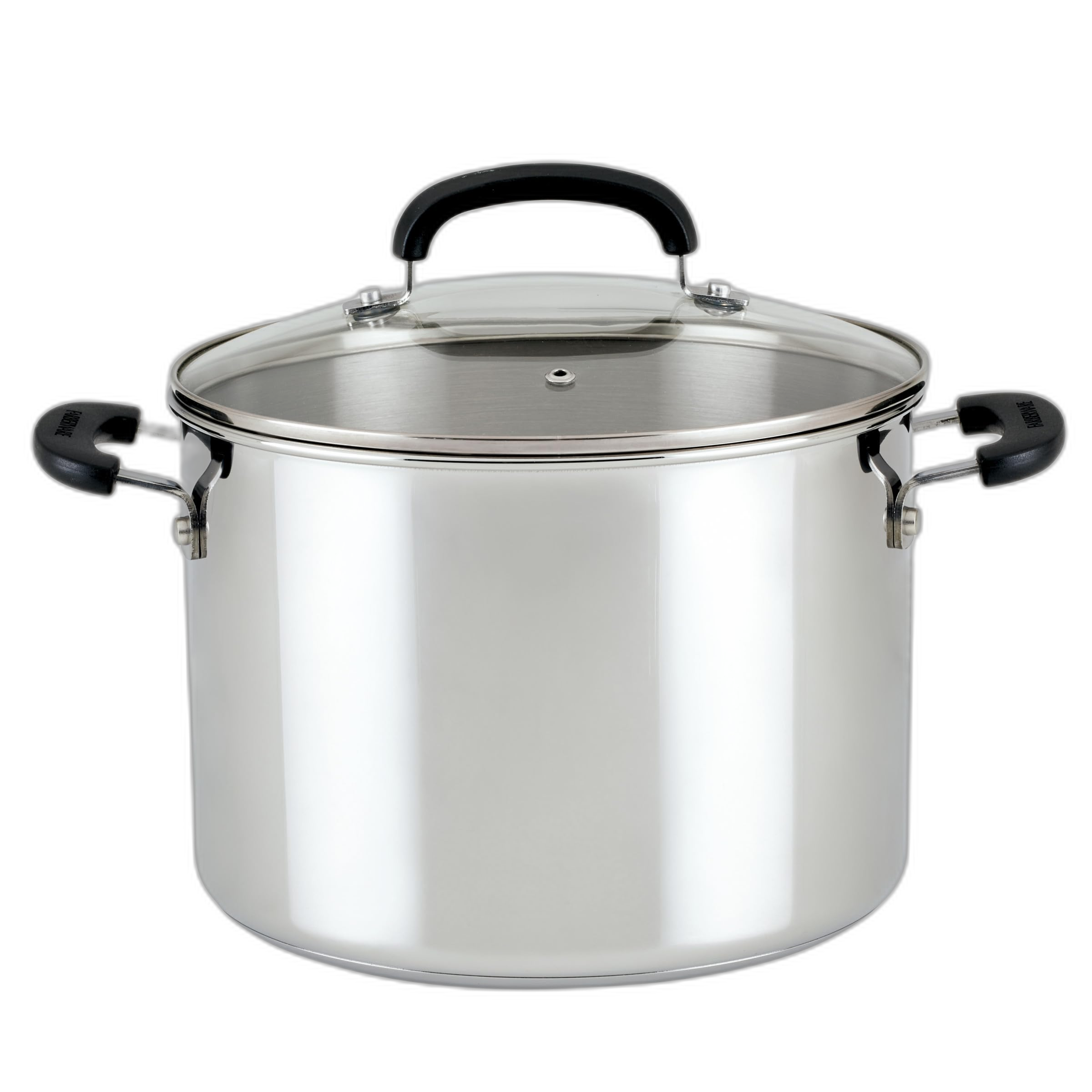 Farberware Brilliance Stainless Steel Stockpot with Glass Lid, 8 Quart, Dishwasher Safe and Induction Ready, Compatible with All Cooktops, Stainless Steel