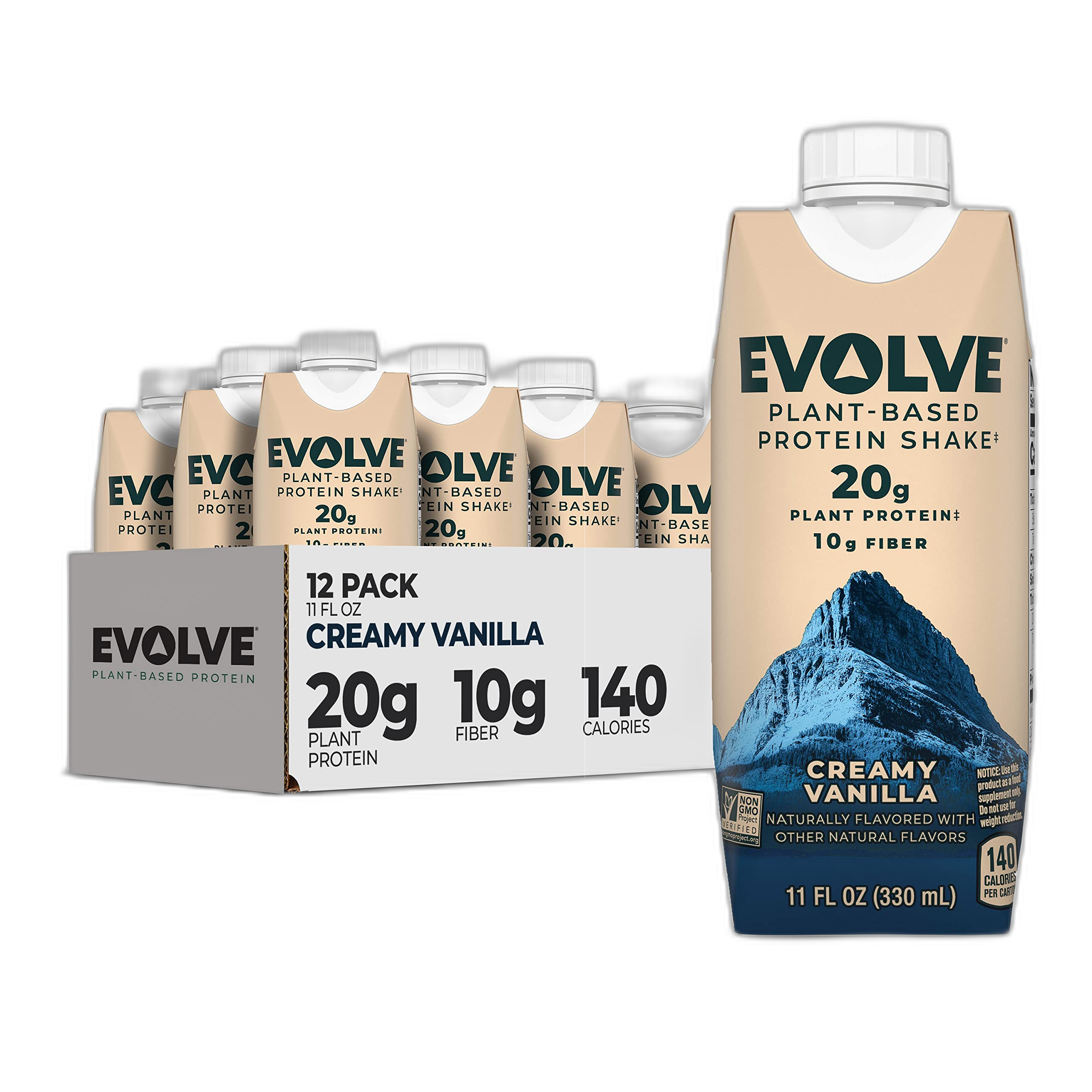 Evolve Plant Based Protein Shake, Vanilla Bean, 20g Vegan Protein, Dairy Free, No Artificial Sweeteners, Non-GMO, 10g Fiber, 11 Fl Oz (Pack of 12) (Formula May Vary)