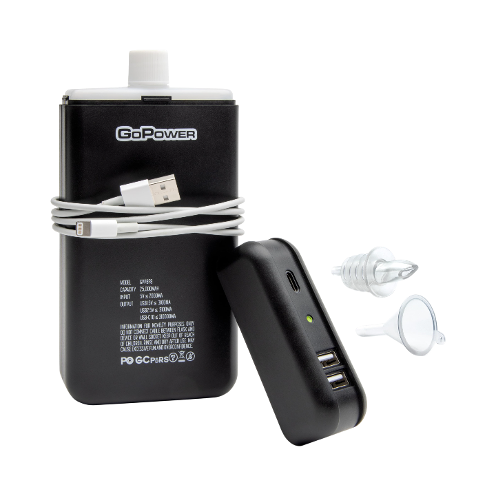GoPong Power Bank Flask (8 oz) - Hidden Alcohol Travel Flask – Secret Liquor Container for Beaches, Cruises, and Sports Events – Includes Funnel & Spout